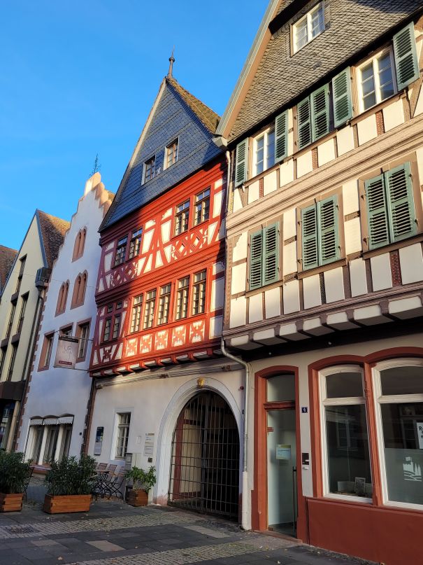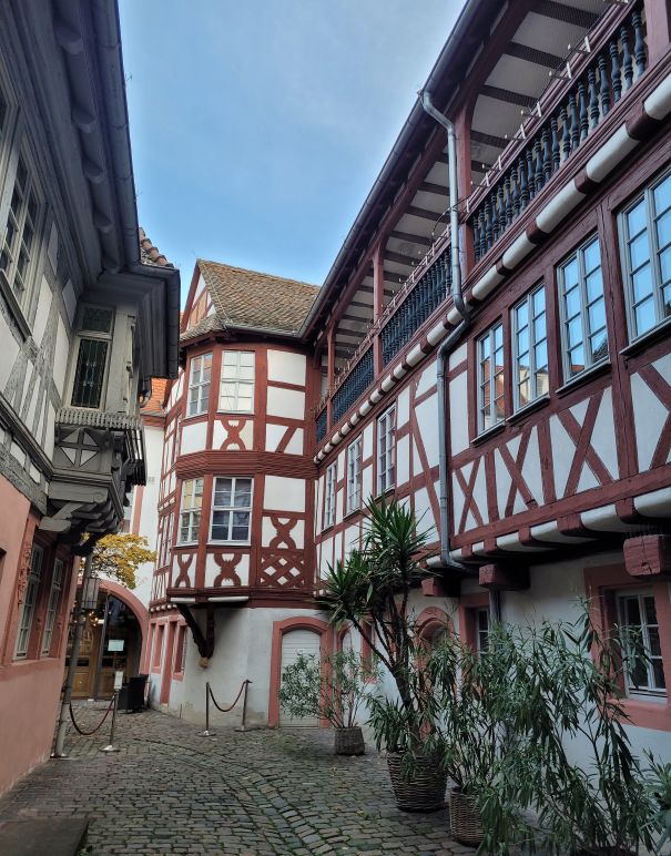 Auch in den Straßen von Neustadt begegnete mir kaum jemand, als ich Mitte November am frühen Sonntagmorgen auf Entdeckungstour ging. Ich habe meine Freundin schon ein paar Mal besucht. Wie hübsch die Altstadt von Neustadt mit ihren gepflasterten Straßen und den vielen Fachwerkhäusern ist, war mir gar nicht mehr bewusst. Leider hatte ich an diesem Morgen nicht allzu viel Zeit; außerdem waren die Temperaturen – der Jahreszeit entsprechend – auch nicht wirklich einladend. Aber ich habe mir fest vorgenommen, wiederzukommen und die Stadt und die Pfalz bei wärmeren Temperaturen und Sonnenschein erkunden.