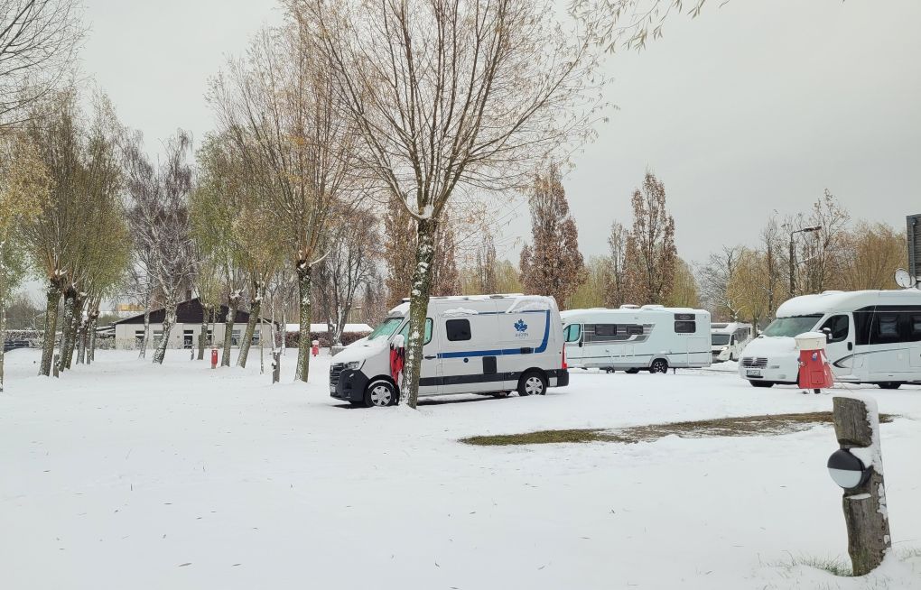 Trotzdem war ich zugegebenerweise etwas skeptisch, als wir losfuhren. Denn die Metorologen hatten für die nächsten Tage winterliche Temperaturen vorhergesagt – und sie hatten ausnahmsweise recht. Am ersten Tag war es bei strahlendem Sonnenschein knackig kalt, am zweiten Abend fing es an zu schneien und am nächsten Tag lagen etwa fünf bis zehn Zentimeter Schnee. Aber in unserem Wohnmobil war es trotzdem kuschlig warm – knapp zehn Quadratmeter lassen sich eben gut und recht schnell aufheizen. Außerdem gibt es auf dem Campingplatz eine Saunalandschaft mit vier Saunen, in denen wir uns jeden Nachmittag aufgewärmt haben.