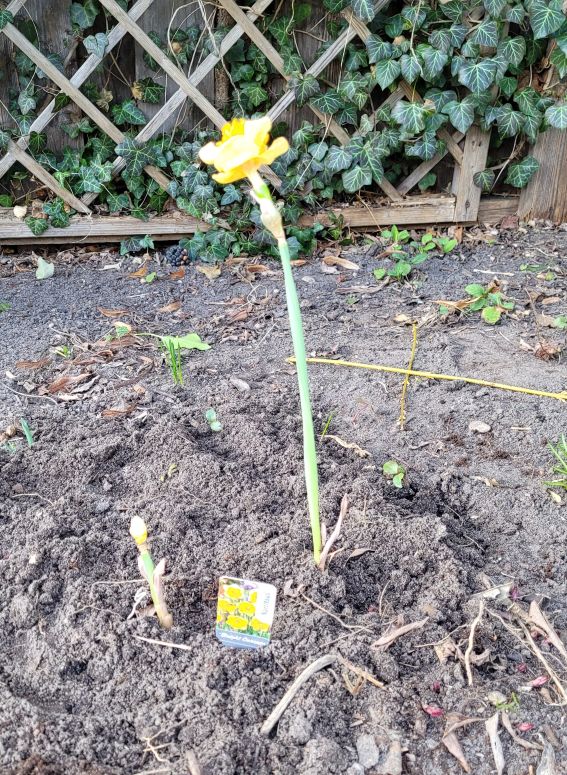 Die Narzisse „Bright Corsage“ ist im Wintergarten nur kurz zu Gast. Ich habe sie gestern gekauft, weil mir nach der Lektüre von Romy Pfyls Tag- und Nachtgedanken der Sinn nach Frühlingsblumen stand. Sobald es draußen wärmer wird, werde ich sie auswildern. In der Nähe meiner Lieblingsnarzisse Rip van Winkle ist noch Platz für weitere gelbe Blüten.