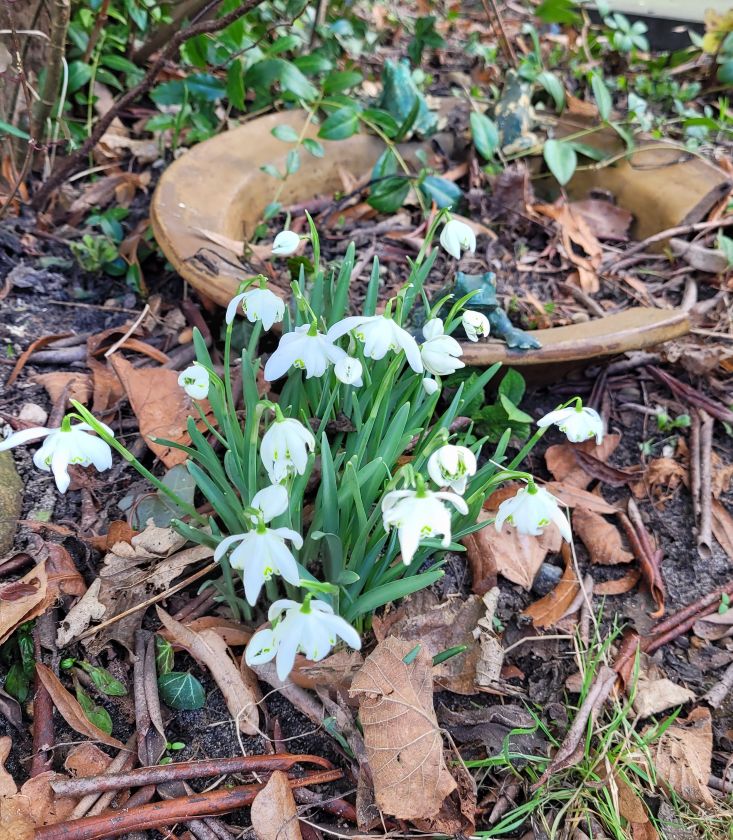 Vor ein paar Tagen habe ich die ersten Schneeglöckchen in unserem Garten entdeckt. Nach dem phänologischen Kalender, der sich nicht nach Daten, sondern nach Erscheinungen in der Natur richtet, zeigen sie, dass der Vorfrühling beginnt. Wahrscheinlich hatten sich die kleinen Pflänzchen bislang unter dem Schnee oder unter dem alten Laub versteckt, das noch zu Hauf auf unseren Beeten liegt.
