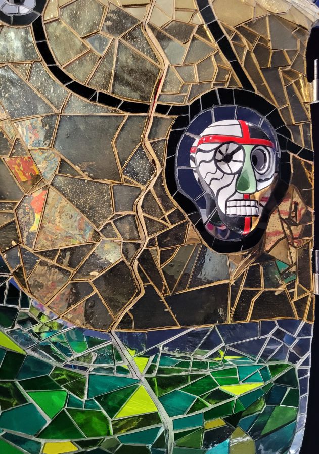 Mit Takashi Murakamis Arbeiten kann ich persönlich am wenigsten anfangen – aber ein Bild hat meine Enkelin und mich gleichermaßen fasziniert: Blue Life Force besteht aus lauter winzigen Totenköpfen. Doch die wirken nicht erschreckend, sondern lebendig, wie zum Leben gehörend. Niki de Saint Phalles bunt glitzernder Totenkopf kann sogar betreten werden und ist als Meditationsraum gedacht. Der Tod gehört eben doch zum Leben.