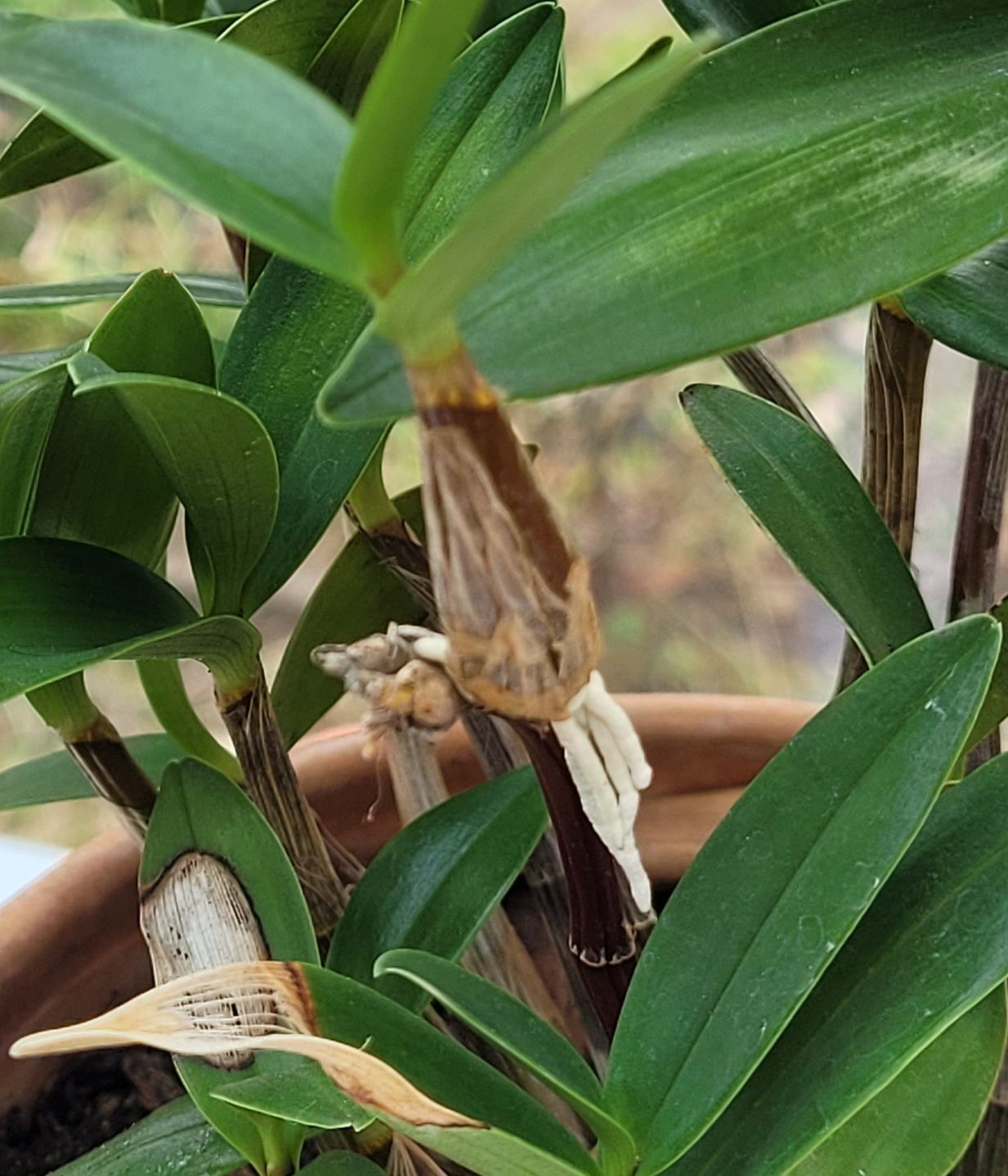 Die Felsenorchidee (Dendrobium Kingianum), die ich im vergangenen Frühling geschenkt bekommen habe, hat den Winter gut überstanden. Blüten sind leider noch nicht in Sicht. Aber vielleicht braucht sie einfach etwas Zeit – und ich mehr Geduld. Denn nach Angaben verschiedener Websites blühen Felsenorchideen erst ab Februar, dann aber mitunter mehrmals im Jahr.