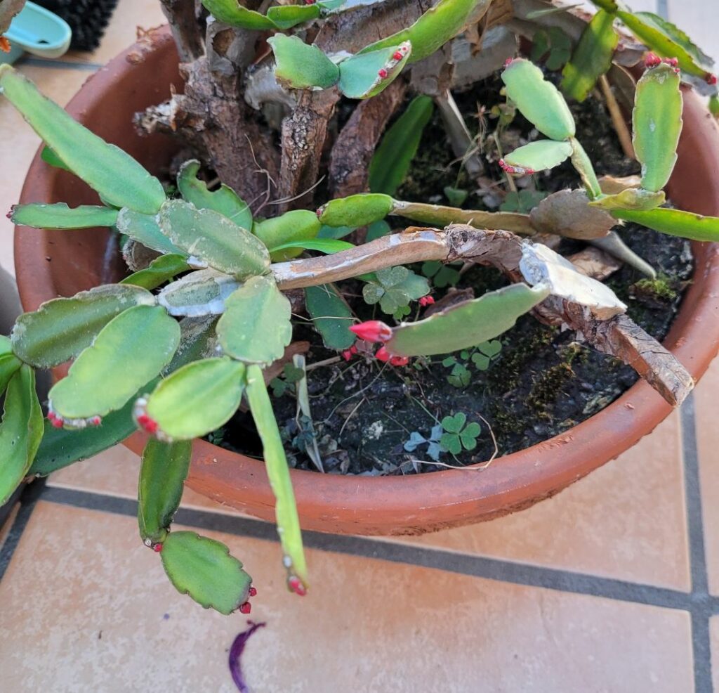 Drinnen im Wintergarten geht dem Osterkaktus allmählich die Kraft aus. Kein Wunder: Er hat, seinem Namen zum Trotz, schon seit Weihnachten geblüht. Bei seinen beiden Geschwistern zeigen sich dagegen jetzt kleine rote Knospen. Ob sie rechtzeitig zu Ostern aufgehen, wird sich zeigen. Denn sie sind beide schon fast ein halbes Jahrhundert alt.