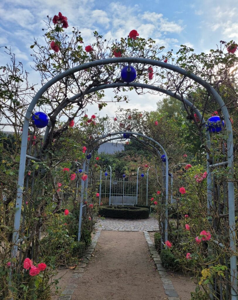 Am Rosengarten wäre ich wieder fast vorbeigelaufen. Bei meinem Besuch im Frühling blühten die Rosen noch nicht, im Oktober ist die Rosenzeit eigentlich vorbei. Doch dann sah ich aus der Ferne ein paar Blüten – und habe es mir anders überlegt.