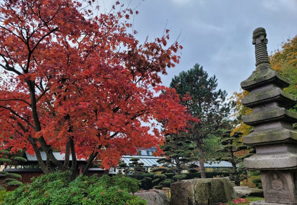 Planten un blomen habe ich erst im letzten Jahr entdeckt. Dabei liegt der Park mitten in Hamburg, zwischen Congress-Centrum, Messegelände und St. Pauli. Und anders als die Herrenhäuser Gärten in Hannover ist er ohne Eintritt zugänglich. Bei meinen ersten Besuchen hat mich die Atmosphäre im Japanischen Garten fasziniert: Er ist auch mitten in der Großstadt ein Ort der Ruhe. in dem die leuchtend roten Blätter des Japanischen Ahorns farbige Akzente setzen.