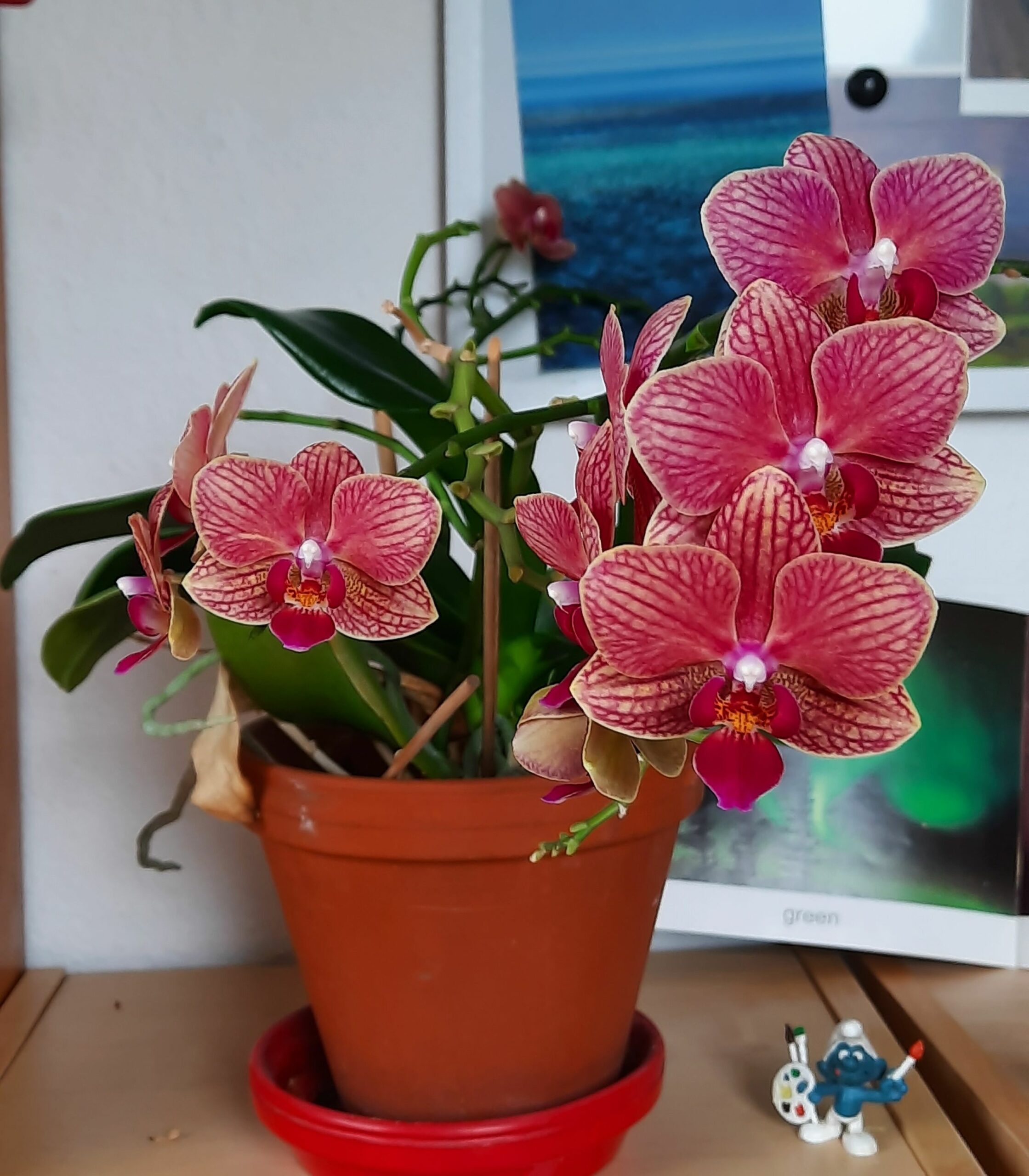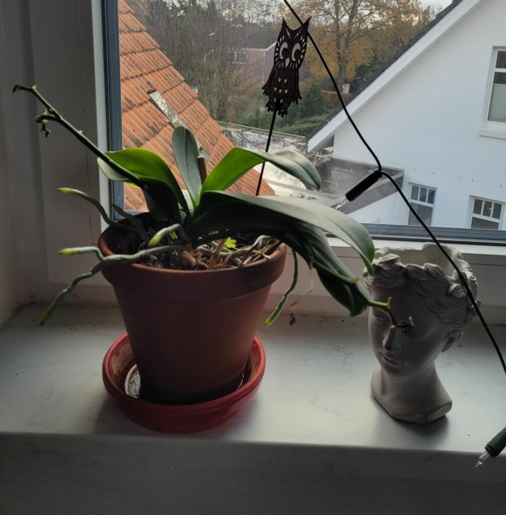 Ein wenig Sorgen bereitet mir die Orchidee, die ich vor sechs Jahren von meiner Mutter übernommen habe. Obwohl sie eigentlich ideal – hell, aber ohne direkte Sonneneinstrahlung – an einem Ostfenster steht, kümmert sie seit einiger Zeit vor sich hin. Vielleicht hat sie sich im vergangenen Winter zu sehr verausgabt, als sie monatelang blühte. Oder sie sehnt sich nach ihrem alten Platz am Westfenster, weil sie Sonne am Abend lieber mag als am Morgen.