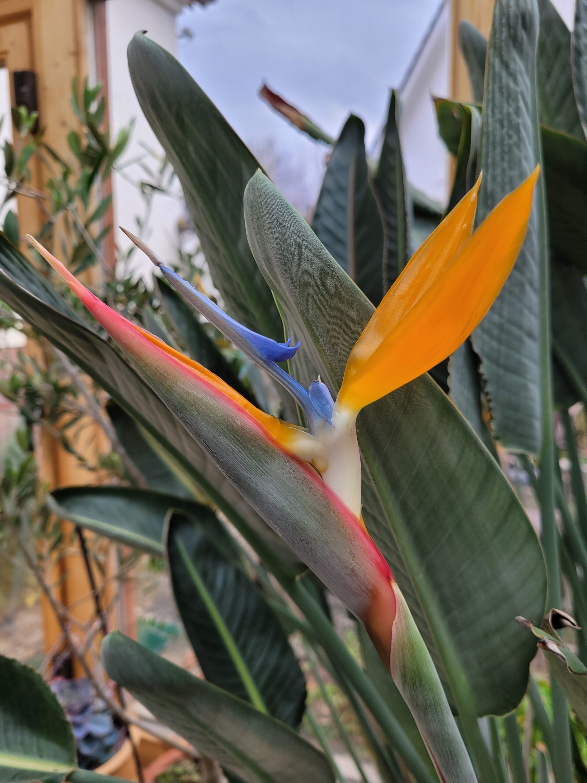 Den Sommer haben alle Pflanzen drinnen und draußen gut überstanden. Der Osterkaktus ist voller Knospen und wird – trotz seines Namens – wohl wieder um die Weihnachtszeit blühen; die erste Blüte der Strelitzie hat sich ebenfalls schon hervorgewagt. Weitere werden in den nächsten Wochen folgen, obwohl Strelitzien Temperaturen zwischen 18 und 24°C lieben. Doch die gibt es in unserem ungeheizten Wintergarten nur an sonnigen Wintertagen. Dann genieße auch ich es dort zu sitzen, zu lesen und zu schreiben.