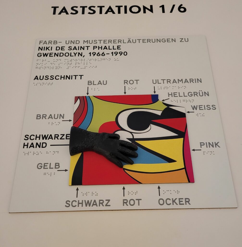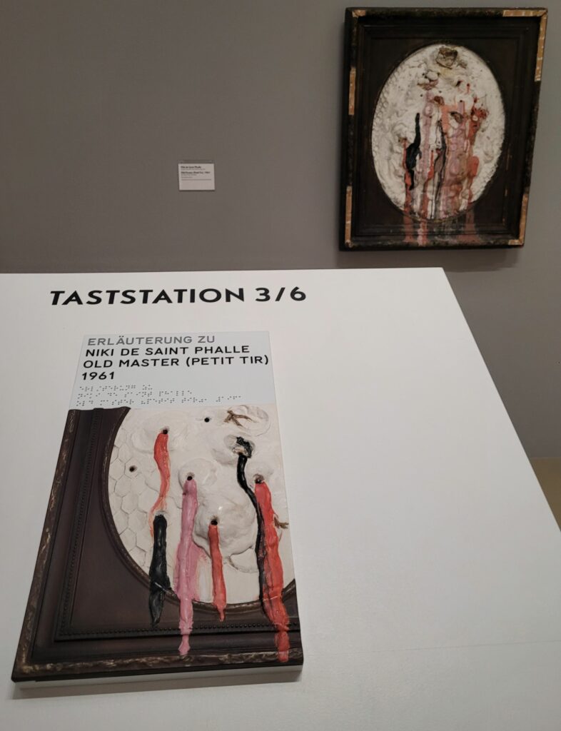 Beeindruckt haben mich auch sechs Taststationen neben einigen Werken von Niki Saint Phalle. Sie ermöglichen nicht nur blinden und sehbehinderten Menschen barrierefreie Zugänge, sondern auch „sehende“ wie ich können die Kunstwerke dadurch auf eine neue Art „begreifen“. Eine wirklich gute Idee.